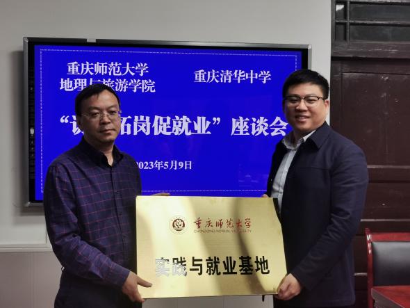 座谈会后,双方进行了共建“实践与就业基地”签约和授牌仪式。学院将以此次签约挂牌为契机,与重庆清华中学开展深入交流与合作,共同培养基础扎实、技能过硬的高素质人才,推动地旅学子实习与就业工作迈上新台阶。
