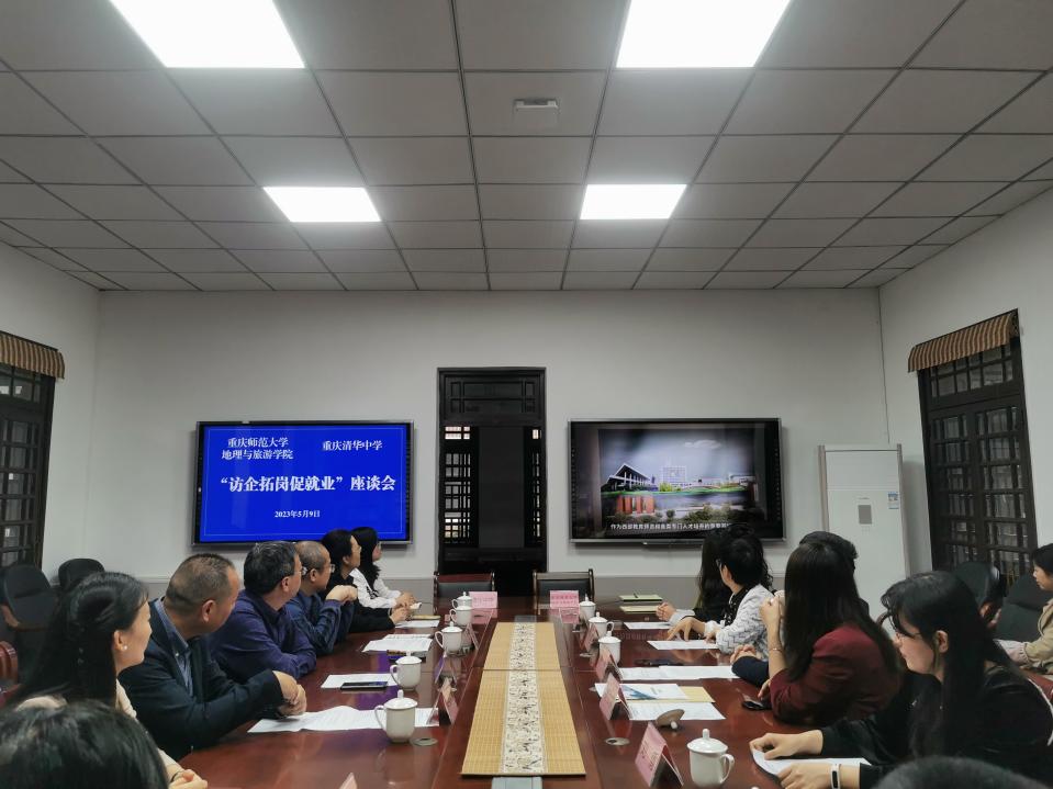 为深入贯彻落实党中央、国务院关于高校毕业生就业工作的决策部署,加强院校合作、供需对接,促进产教融合。5月9日下午,学院党委副书记熊宇、地理科学系副系主任杨娅娜教授以及何太蓉教授、刘倩老师等一行人前往重庆清华中学开展访企拓岗专项工作。清华中学校长余木龙、副校长杜长明、教务处主任罗学平、党委办公室主任袁芳以及地理教研组老师和部分清华中学重师校友参与此次会议。会议由清华中学副校长杜长明老师主持。