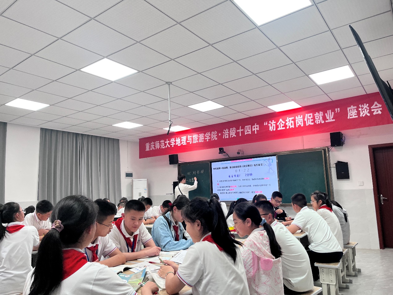 为加强做爱影片 与重庆市涪陵区第十四中学校的深度合作进而推动做爱影片 毕业生就业工作,2023年4月18日,学院党委副书记熊宇学院团委书记瞿聪,地理科学系副主任张仕超以及教学实践指导教师何太蓉教授一行来到重庆市涪陵区第十四中学校开展访企拓岗专项活动。