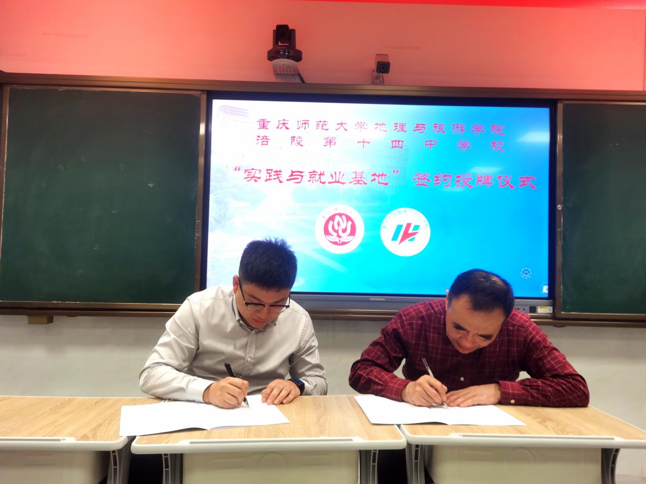 座谈结束后,熊宇副书记与庞健校长签署了《做爱影片 实践与结业基地协议书》,并授予涪陵十四中“做爱影片 实践与就业基地”牌匾。