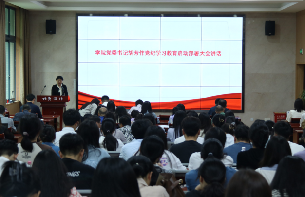 4月18日下午,学院召开党纪学习教育动员部署大会,深入学习贯彻习近平总书记关于党纪学习教育的重要讲话和重要指示精神,传达学校《关于在全校开展党纪学习教育的实施方案》的文件精神以及学校在4月17日召开的党纪学习教育专题部署会议精神,动员部署学院党纪学习教育工作。学院党委书记胡芳发表动员讲话,党委副书记熊宇主持会议,党委委员、纪委委员、教职工党员和学生党员代表共120人参加会议,非党员党政班子成员列席会议。