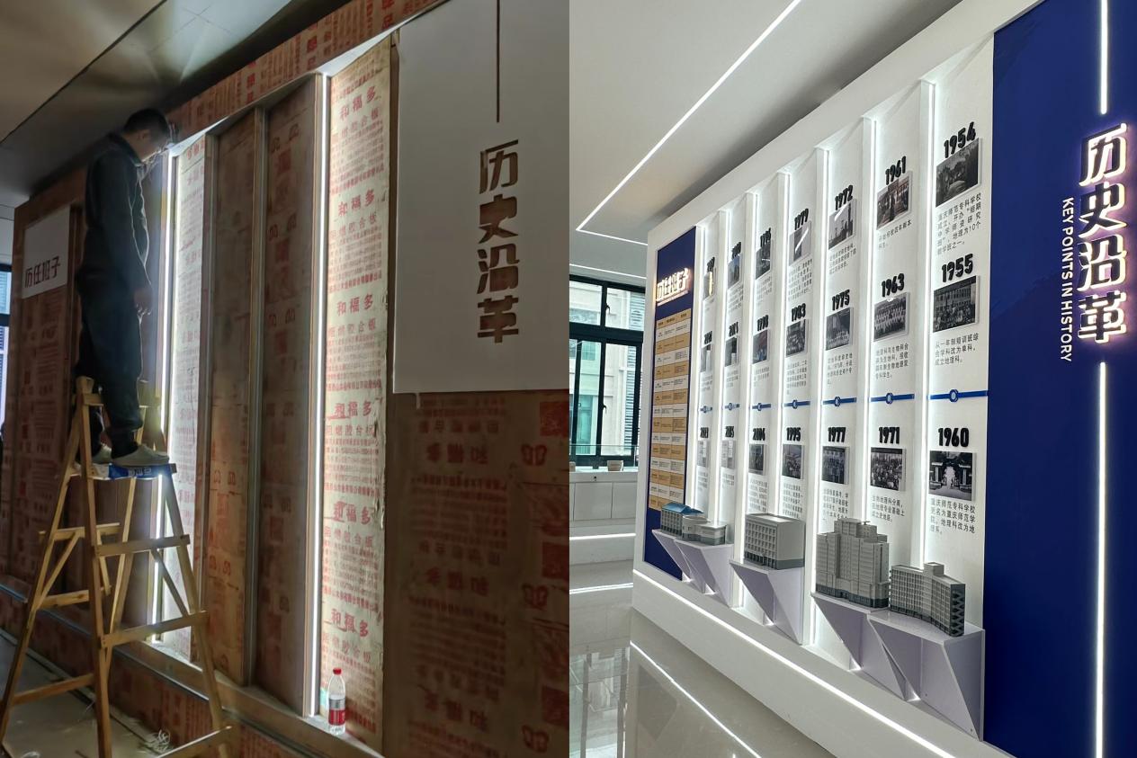 为全面展示办学成果,学院同时还在致用楼各楼层进行了办学成果展的展陈建设,建设了时光长廊,不断丰富学院的文化空间,强化环境育人功能。学院撰写了全楼层建设点位解说词,培养了一批学生讲解员,确保更好地引导返校归院的校友了解学院发展状况,深化校友爱校情怀,打造更加浓厚的“归家”氛围,也使学生在参加解说的过程中更加深入地了解院情院史,成为学院开展学生思政教育的多样化探索。未来,学院将继续秉承“海纳百川、志存高远、励精笃行、求实创新”的院训精神,不断书写新的辉煌篇章!