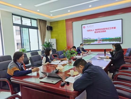 党建工作表示感谢,同时简要汇报了学院最近开展的党建工作情况;罗院长对“双带头人”教师党支部书记韦杰同志的工作做简要介绍,并高度肯定该党支部在推动学院发展中所取得的成绩,并希望学校党委组织部给予进一步支持和指导;学校党委组织部王丽萍副部长就“双带头人”教师党支部建设调研工作做简单的背景介绍,然后听取韦杰书记的工作汇报。