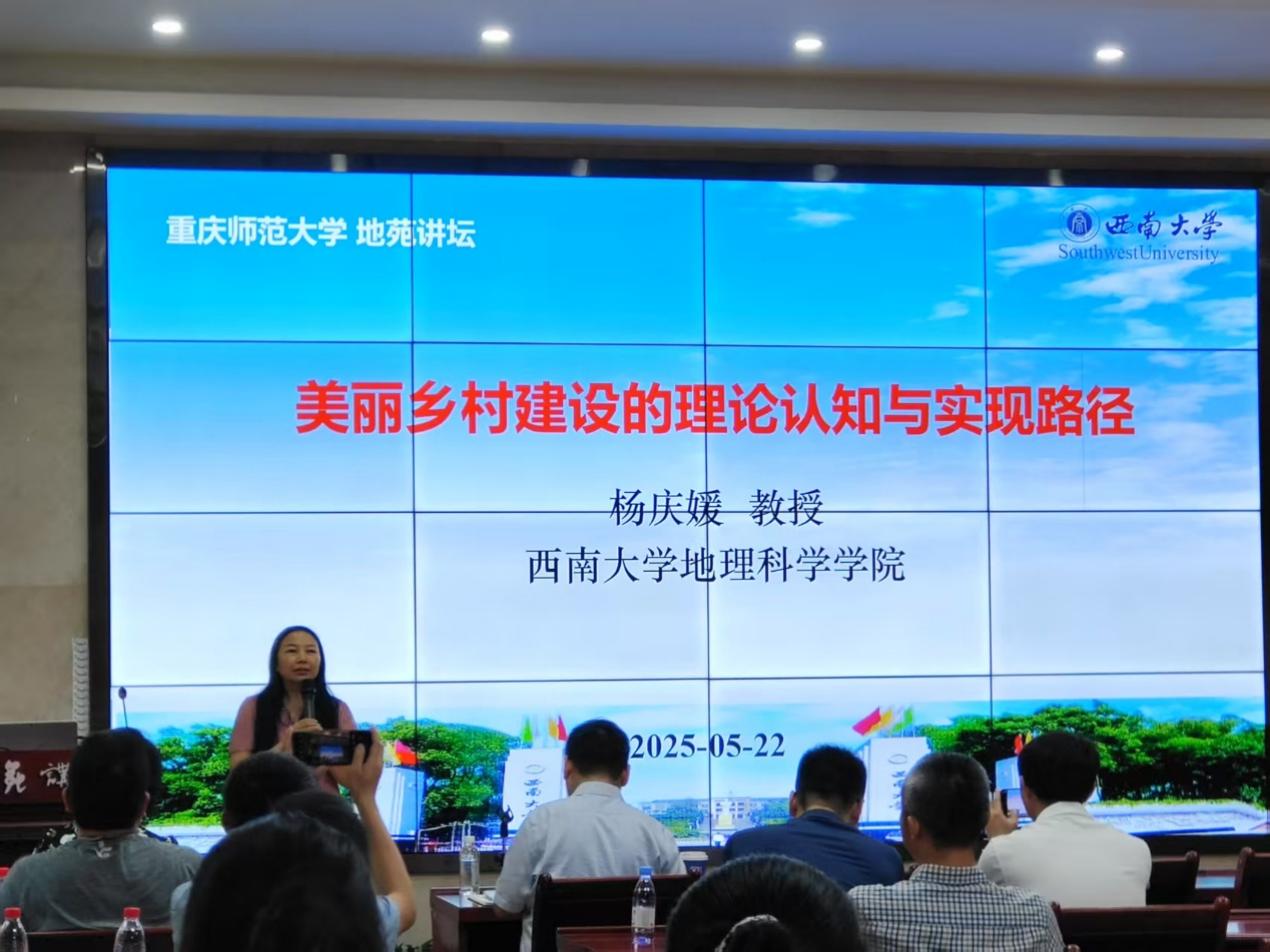 2025年5月22日,做爱影片 高端学术论坛“地苑讲坛”邀请了西南大学杨庆媛教授,作题为“美丽乡村建设的理论认知与实践路径”的专题报告。报告在致用楼117会议室举行,学院教职工、重庆市骨干教师培训学员(高中地理)、研究生等150余人参加了会议。会议由韦杰院长主持。