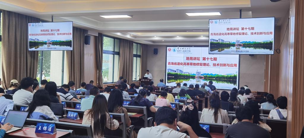 高端学术论坛“地苑讲坛”邀请了中国科学院西北高原生物研究所周华坤研究员,作题为“青海省退化高寒草地修复理论、技术创新与应用”的专题报告。报告在致用楼117会议室举行,学院教职工、研究生等150余人参加了会议。报告由韦杰院长主持。