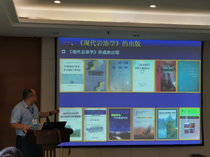 蒲俊兵研究员在本次会议上主持分会场“双碳目标和岩溶碳汇”相关报告,并做了题为“祝贺《现代岩溶学》出版六周年—现代岩溶学学科体系浅论”的学术报告,讲述了对现代岩溶学学科体系未来发展的认识与见解。随后应邀参加了“袁道先院士从事岩溶地质工作70周年”座谈会。