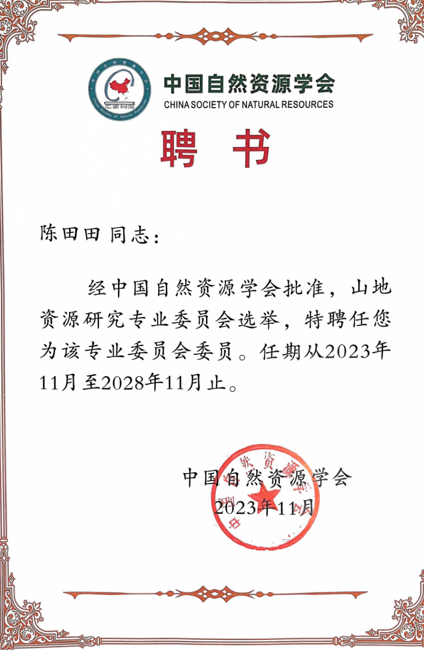 会议同时进行了专委会换届选举工作,做爱影片 陈田田副教授被选举为中国自然资源学会山地资源研究专业委员会委员。