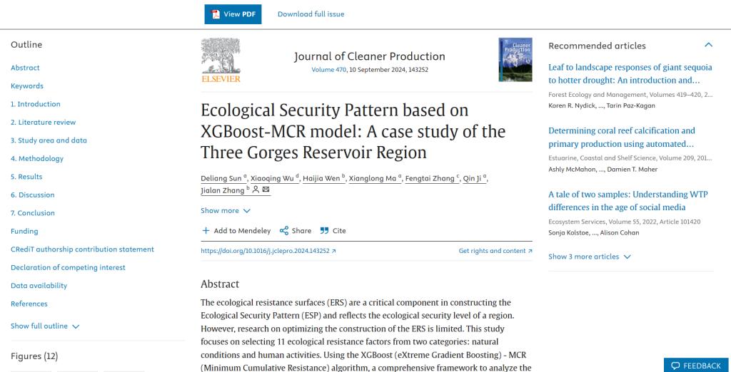 近日,GIS应用研究重庆市高校重点实验室孙德亮和冀琴团队基于XGBoost-MCR模型在生态安全格局研究中取得重要成果,成果首次将机器学习应用到生态安全格局研究中,研究成果以“Ecological Security Pattern based on XGBoost-MCR model: A case study ofthe Three Gorges Reservoir Region”为题发表在《Journal of Cleaner Production》上。