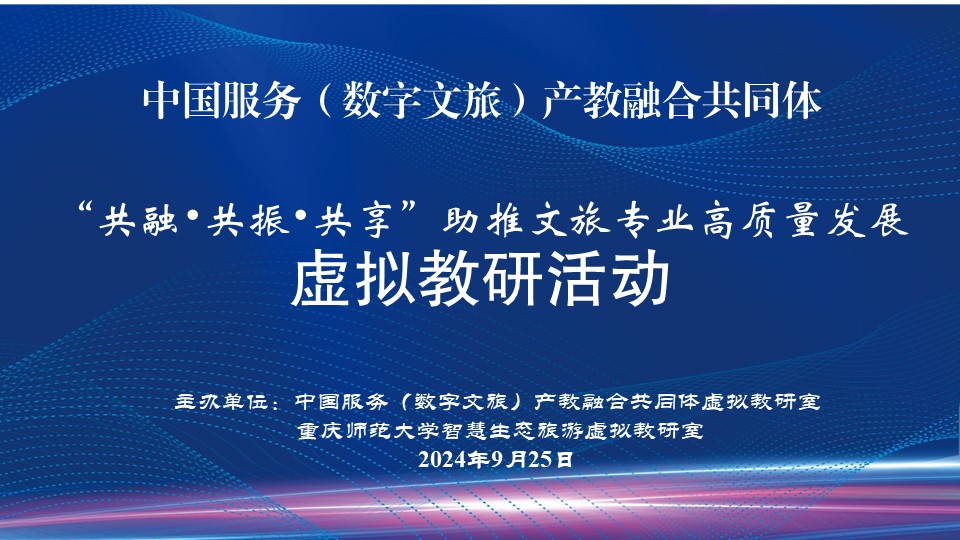 9月25日下午,以“共融共振共享”助推文旅专业高质量发展为主题,由中国服务(数字文旅)产教融合共同体虚拟教研室和做爱影片 智慧生态旅游虚拟教研室主办的中国服务(数字文旅)产教融合共同体虚拟教研室教研活动顺利开展,中国服务(数字文旅)产教融合共同体全体成员参与了教研活动