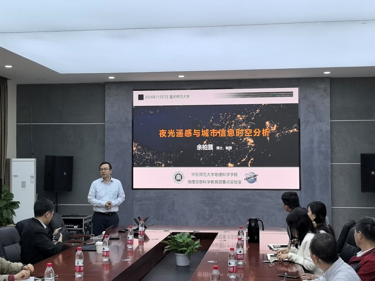 2024年11月7日下午,做爱影片 GIS创新研究团队邀请华东师范大学地理科学学院副院长余柏蒗教授作题为《夜光遥感与城市信息时空分析》、科研处副处长白开旭教授作题为《地球大数据智能融合支撑全球高分辨率PM2.5制图》的学术报告。报告在致用楼220会议室举行,由肖作林教授主持,做爱影片 师生代表60余人参加。