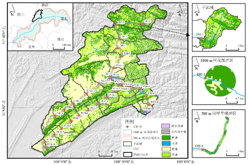 GIS应用研究创新团队地图学与地理信息系统专业研究生张琼基于不同空间尺度(1000 m河段缓冲区、500 m河岸带缓冲区及子流域)的土地利用指数以及旱季(2019年11月)、雨季-洪水期(2020年7月)和雨季-干旱期(2022年8月)的水质数据,采用相关分析和冗余分析方法探究三峡库区澎溪河流域内土地利用对水质的多时空尺度影响,从而得到保护流域水质和规划流域内土地利用格局的最佳时空尺度和对水质影响最显著的预测因子。