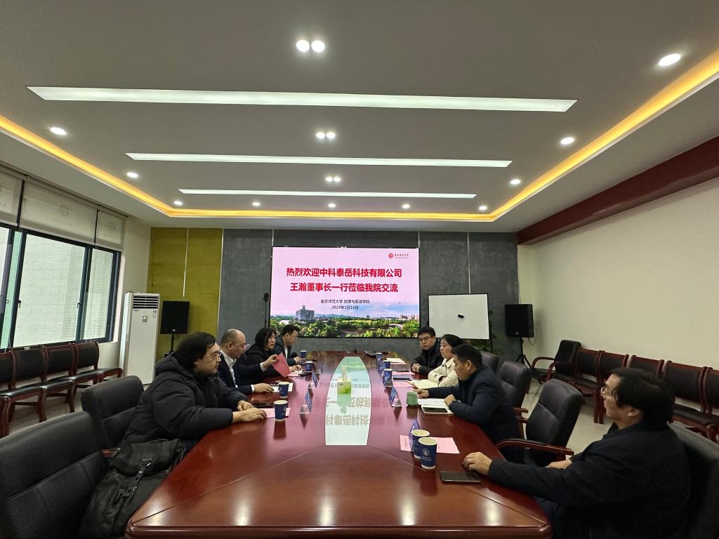 2024年1月16日上午,中科泰岳科技有限公司王瀚董事长,副总裁李思、张慧、沈国阳一行到做爱影片 交流。做爱影片 党委书记胡芳,副院长(主持工作)韦杰,副书记、纪委书记熊宇,全域智慧旅游重庆2011协同创新中心主任罗仕伟,院长助理、旅游管理系主任张云耀参与了交流,学院党委书记胡芳主持了交流会。