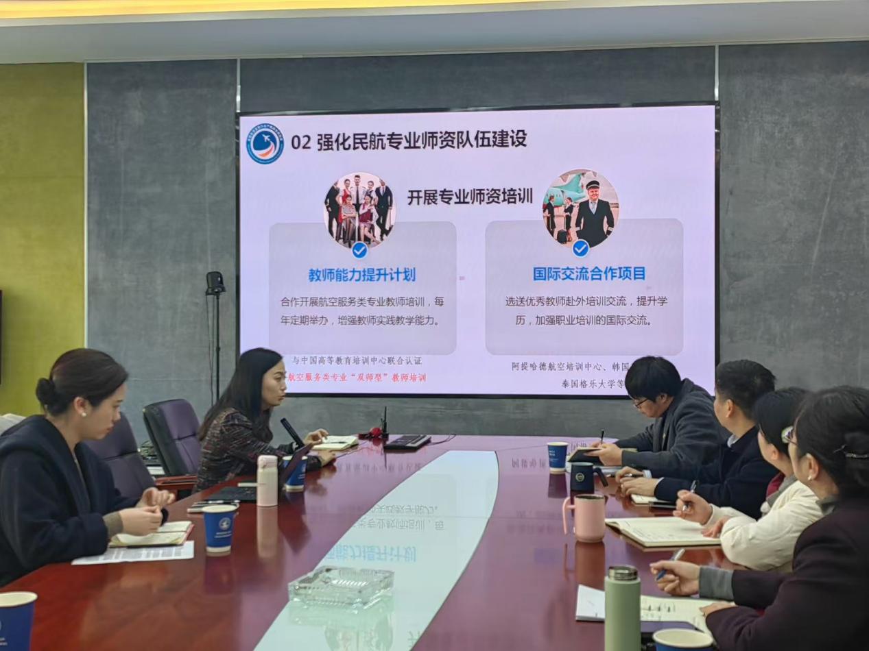 学院执行院长韦杰对李青谦副总经理的到来表示欢迎,并表示学院对航空服务艺术与管理专业的重视、支持与期望,并提出要进一步规范化办学,未来将重点着眼于高质量人才培养、持续关注学生未来职业发展、打造高水平办学成果、建设高素质师资队伍和高级别平台,持续推动各项专业建设工作,打造航空服务艺术与管理专业特色和亮点。学院党委胡芳书记提出育人就要出精品,希望企方积极为学生搭建多个平台,注意细化落地、规范办学,校企合作共同培养高质量航空服务人才。