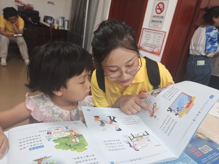 实践队员给晨晨讲解安全知识  (赵金华 摄)