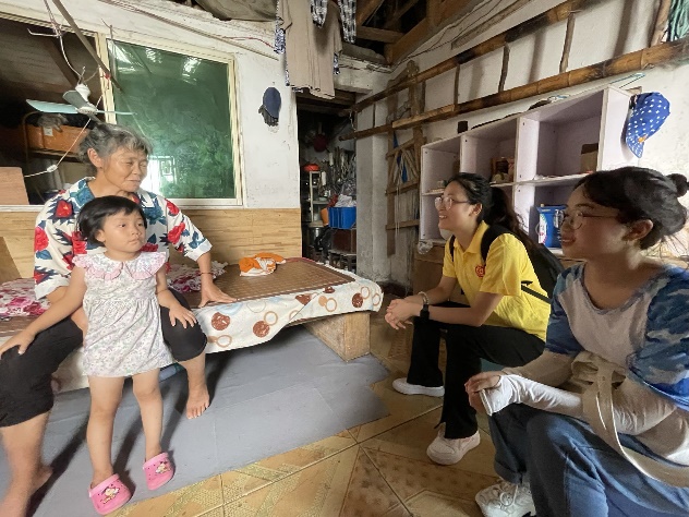 实践队员与晨晨的奶奶亲切交谈  (蔡春妍 摄)