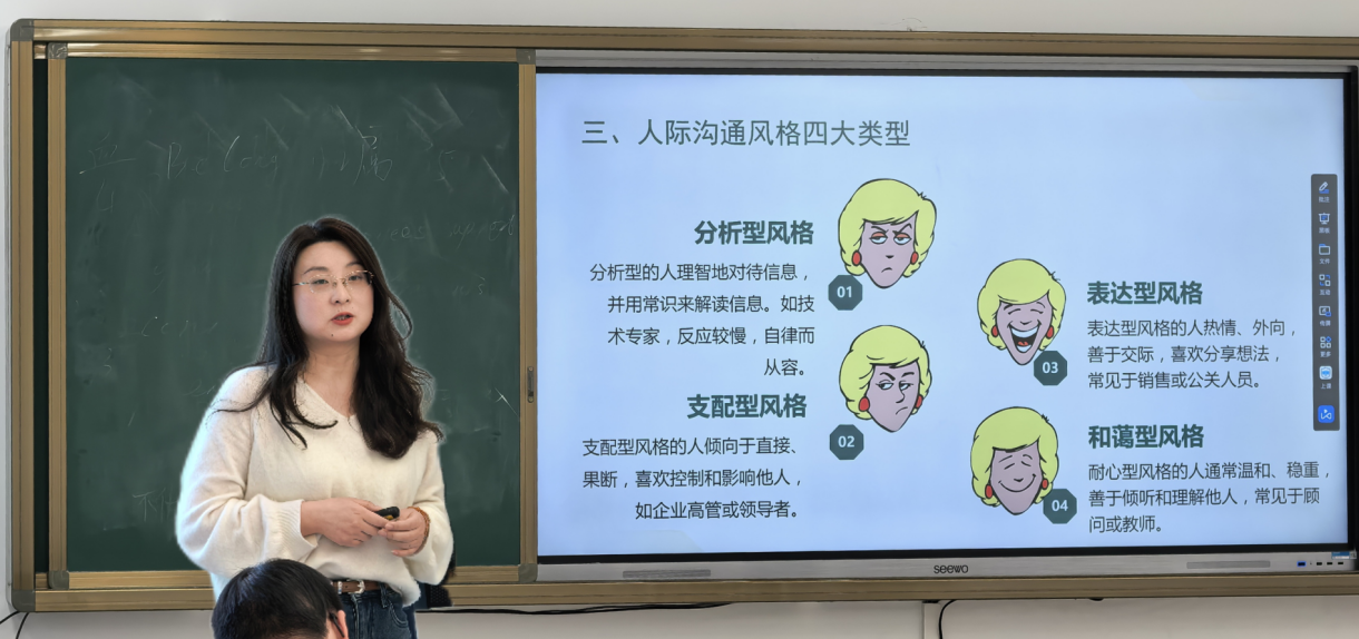 李林芝老师在《管理沟通》课堂中,以新媒体技术实时展示学生讨论成果,通过《西游记》人物性格分析,解读“分析型”“支配型”等不同沟通风格。她以“师徒四人如何化解矛盾”为情境,引导学生思考现代团队沟通策略,课堂氛围轻松活泼,知识点通俗易懂。