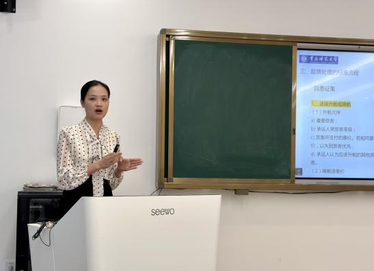 企业方周敬老师随后来带的《民航地面服务与管理》示范课,以东方航空机票超售处理典型案例为切入点,构建了"情境导入-冲突分析-标准解析-共情沟通"四阶教学模型。课程教学框架体现了三个融合:一是航空公司超售机制与旅客权益保障的双向解读;二是服务流程标准化与情绪管理柔性化的有机统一;三是通过投诉处理情景演练,将合规操作与人文关怀深度融合。周老师特别突出了课程与《民航法律法规》《服务心理学》等前序课程的有机衔接,充分展现了企方老师的实操教学优势。